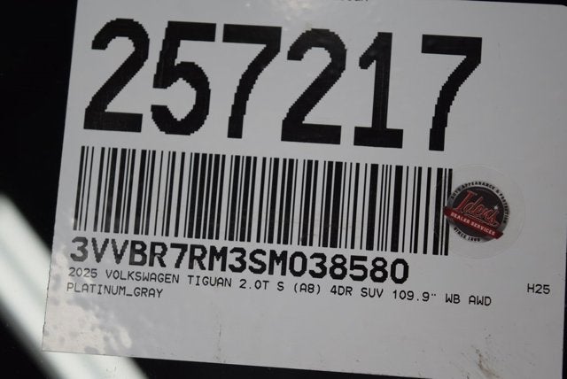 Platinum Gray Metallic 2025 Volkswagen Tiguan 2.0T S AWD 8-Speed Automatic 2.0L TSI DOHC