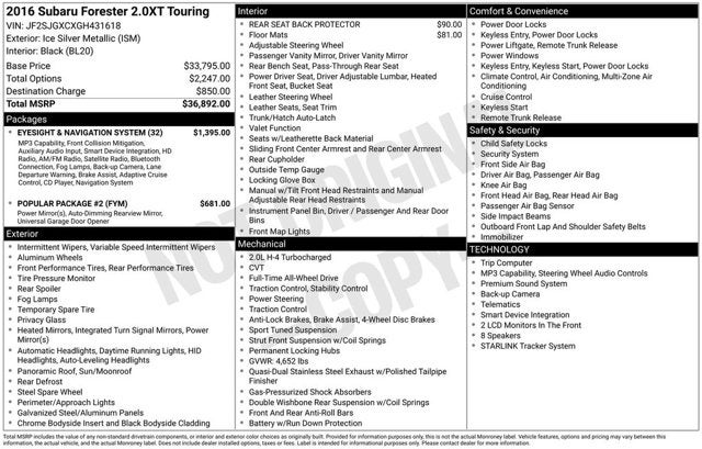 2016 Subaru Forester Ice Silver Metallic 2.0XT Touring AWD 2.0L 4-Cylinder DOHC 16V Turbocharged Intercooled Lineartronic CVT