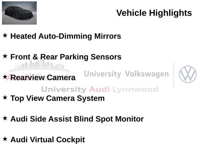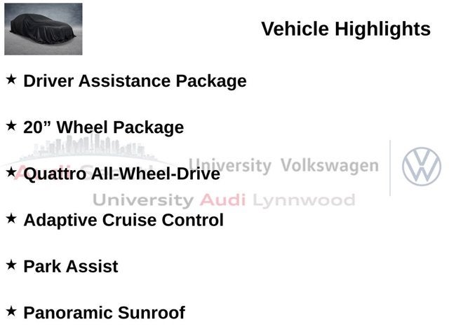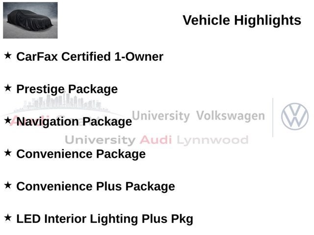 CarFax Certified 1-Owner, Prestige Package, Navigation Package, Convenience Package, Convenience Plus Package, LED Interior Lighting Plus Pkg, Driver Assistance Package, 20 Wheel Package, Quattro All-Wheel-Drive, Adaptive Cruise Control, Park Assist, Panoramic Sunroof, Heated Auto-Dimming Mirrors, Front & Rear Parking Sensors, Rearview Camera, Top View Camera System, Audi Side Assist Blind Spot Monitor, Audi Virtual Cockpit, Audi MMI Navigation Plus, Bang & Olufsen 3D Sound System, Apple Carplay & Android Auto, Audi Connect, Bluetooth® w/ Streaming Audio, SiriusXM Radio, Heated Steering Wheel, Heated Sport Seats, Heated Rear Seats, Passive Keyless Entry, Push-Button Start, Power Liftgate. CARFAX One-Owner.