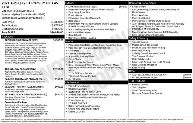 2021 Audi Q3 Mythos Black Metallic Premium Plus S Line quattro quattro 2.0L 4-Cylinder TFSI 8-Speed Automatic with Tiptronic