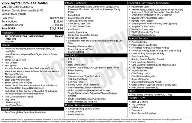 2022 Toyota Corolla Classic Silver Metallic SE FWD 2.0L I4 DOHC 16V CVT