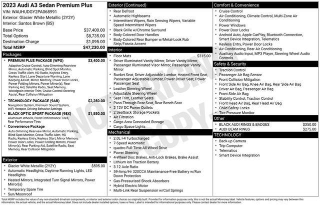 2023 Audi A3 Glacier White Metallic 40 Premium Plus quattro quattro 2.0L 4-Cylinder TFSI 7-Speed Automatic S tronic