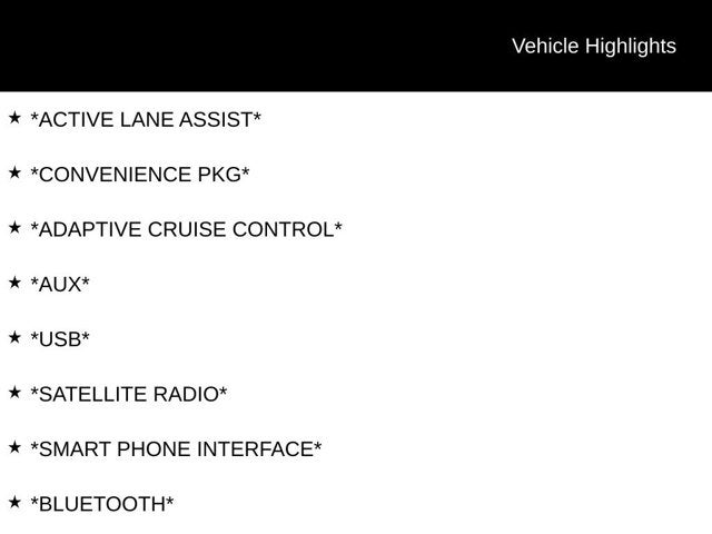 • Radio w/Seek-Scan, Clock, Aux Audio Input Jack, Steering Wheel Controls, Voice Activation and Radio Data System