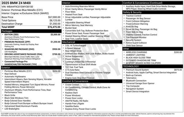 2025 BMW Z4 Portimao Blue Metallic sDrive M40i RWD 3.0L I6 Manual
