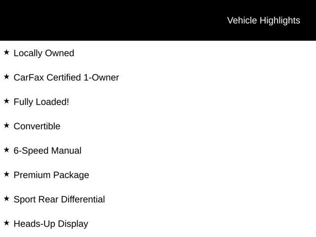 • Power Convertible Top w/Lining, Glass Rear Window, Fixed Roll-Over Protection, Manual Wind Blocker and Top