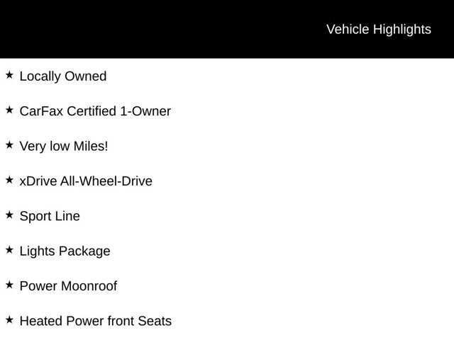 Locally Owned, CarFax Certified 1-Owner, Very low Miles!, xDrive All-Wheel-Drive, Sport Line, Lights Package, Power Moonroof, Heated Power front Seats, Navigation System, Harman / kardon Sound System, Back Up Camera, Comfort Access Keyless Entry, Push Button Start, BMW M Performance Pedals, BMW M Performance Grille, Storage Package, Matte Chrome Exterior Trim, Nappa Leather Steering Wheel, Sport Line, Sport Package. CARFAX One-Owner.