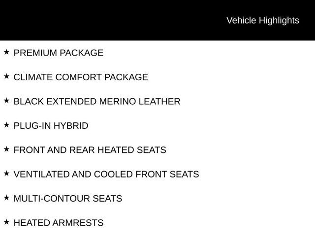 PREMIUM PACKAGE, CLIMATE COMFORT PACKAGE, BLACK EXTENDED MERINO LEATHER, PLUG-IN HYBRID, FRONT AND REAR HEATED SEATS, VENTILATED AND COOLED FRONT SEATS, MULTI-CONTOUR SEATS, HEATED ARMRESTS, ADAPTIVE FULL LED LIGHTS, COMFORT ACCESS KEYLESS ENTRY, ACTIVE DRIVING ASSISTANT, APPLE CARPLAY / ANDROID AUTO, LIKE COCKPIT PRO, HARMAN KARDON SURROUND SOUND, ACTIVE BLIND SPOT DETECTION, 4-Zone Automatic Climate Control, Climate Comfort Package, Connected Package Pro, Front & Rear Heated Seats, Front Ventilated Seats, Gesture Control, harman/kardon Surround Sound System, Heated Front Seats, Armrests & Steering Wheel, Live Cockpit Pro, Multi-Contour Seats, Premium Package. CARFAX One-Owner.