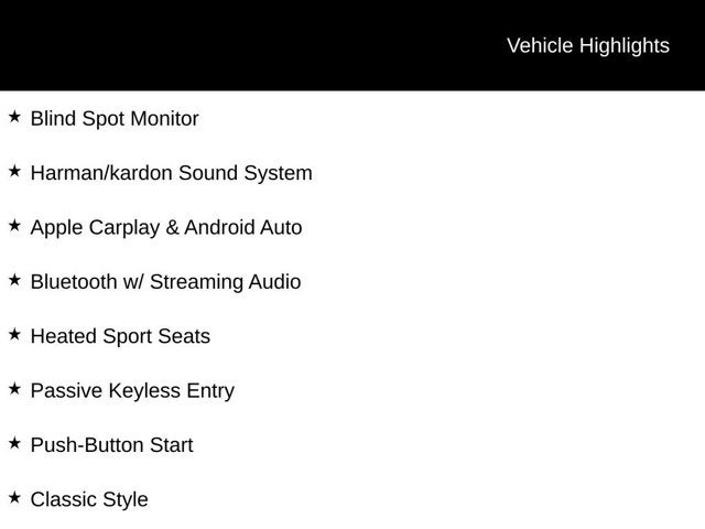 CarFax Certified 1-Owner, Hard to Find!, Navigation Package, Heads-Up Display, Power Sunroof, Heated Auto-Dimming Mirrors, Rear Parking Sensors, Rearview Camera, Blind Spot Monitor, Harman/kardon Sound System, Apple Carplay & Android Auto, Bluetooth® w/ Streaming Audio, Heated Sport Seats, Passive Keyless Entry, Push-Button Start, Active Driving Assistant, Auto-Dimming Interior & Exterior Mirrors, Auto-Dimming Rear-View Mirror, Body Color Roof, Brake assist, Classic Style, Classic Trim Specific Additional Content, Comfort Access Keyless Entry, Comfort Package, Electronic Stability Control, Four wheel independent suspension, Front dual zone A/C, Headliner In Grey, HEATED DOOR MIRRORS, Illuminated entry, Low tire pressure warning, Remote keyless entry, Signature Plus Trim, Speed-sensing steering, Sports Steering Wheel, Traction control, Wheels: 17 x 7 U-Spoke Grey, Wireless Device Charging. CARFAX One-Owner.