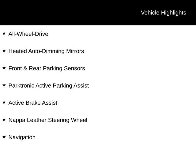 All-Wheel-Drive, Heated Auto-Dimming Mirrors, Front & Rear Parking Sensors, Parktronic Active Parking Assist, Active Brake Assist, Nappa Leather Steering Wheel, Navigation. CARFAX One-Owner.